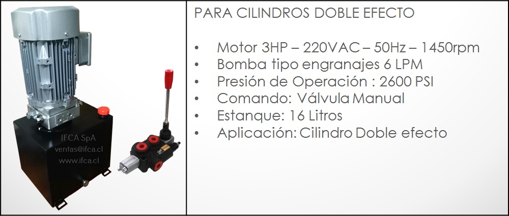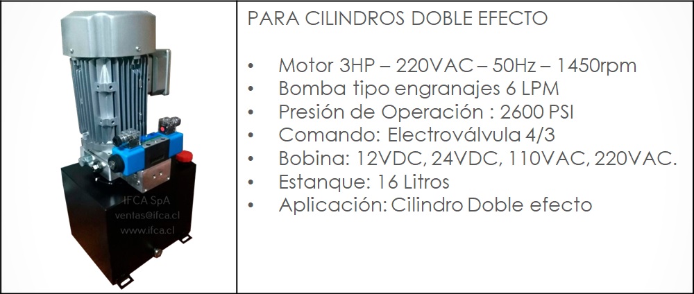Central Hidráulica con motor de 3HP de potencia, alimentada con 220VAC, el motor tiene una velocidad angular de 1450 rpm. La bomba instalada es de tipo engranajes de alto rendimiento, proporciona al sistema un caudal de 6 Litros/min.