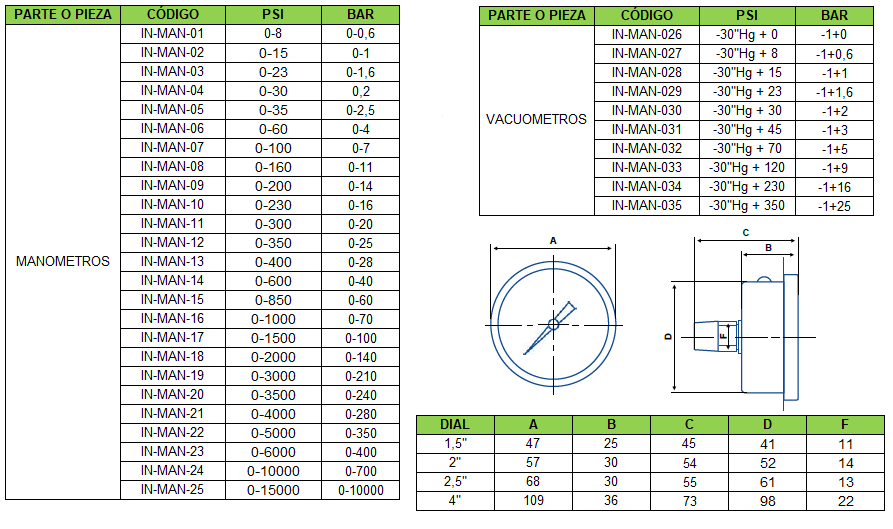 - Esfera: Diámetro nominal 63mm (2-1/2")